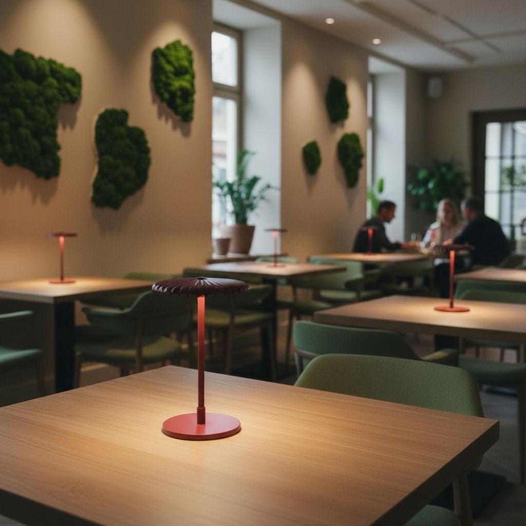 Мы искренне любим всё, что связано с природой, и стремимся передать это чувство через наши изделия. В этом интерьере, наполненном живыми растениями и мягким светом, светильники из коллекции Ruby Bonnet становятся естественным продолжением окружающей среды. Их форма вдохновлена грибом Cruentomycena viscidocruenta, известным как «рубиновая шляпка» — удивительное лесное создание с тонкой ножкой, полупрозрачной шляпкой и насыщенным рубиновым цветом.