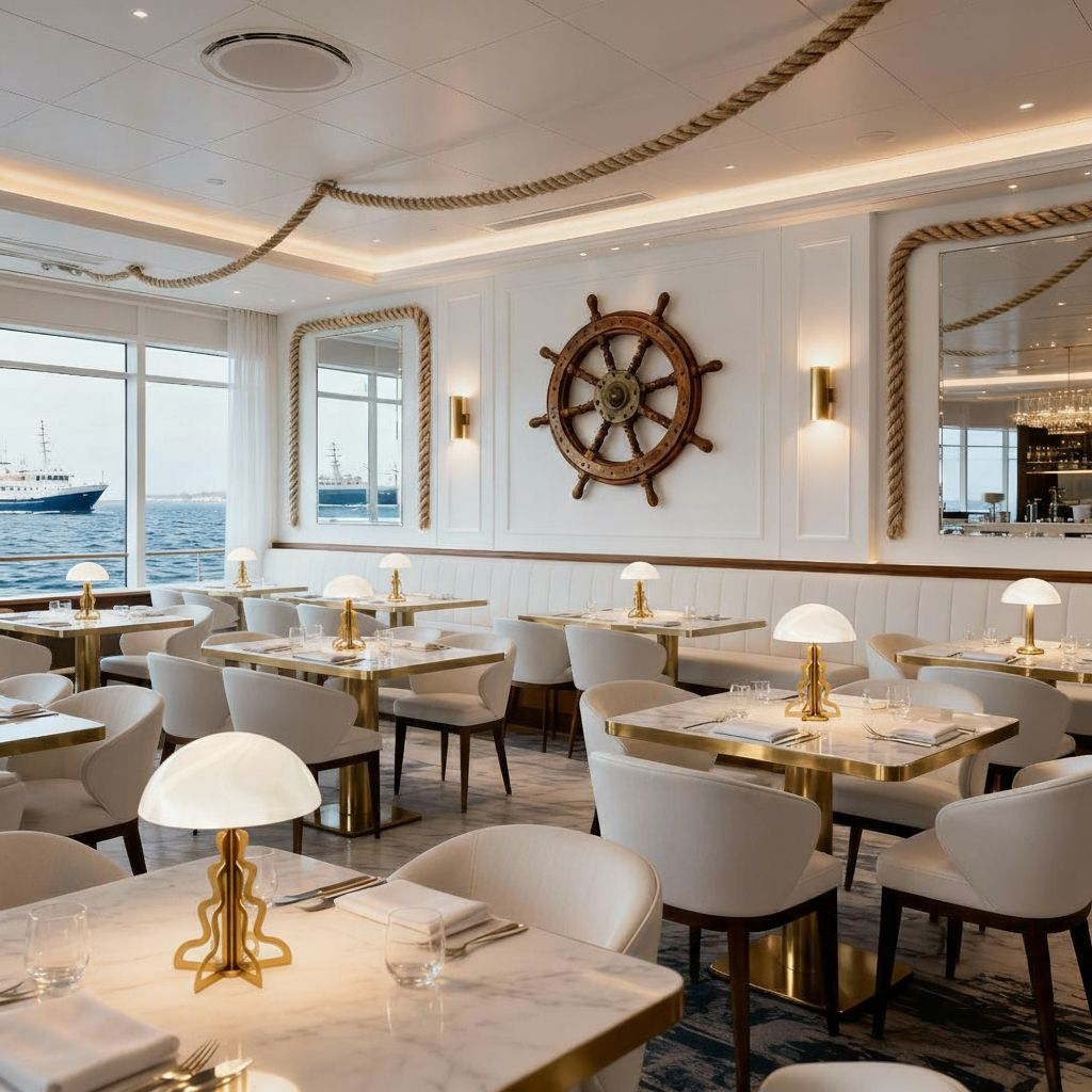 Наши настольные лампы из коллекции Medusa вдохновлены формой медуз — загадочных созданий моря, они словно парят в пространстве, источая мягкое и рассеянное сияние. Эта органичная форма идеально ложится в интерьер морского ресторана, становясь неотделимой частью пространства.