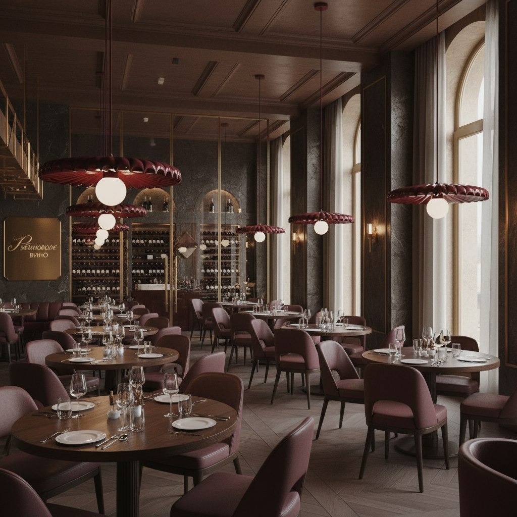 В интерьере, где важна камерность и интимность, освещение играет ключевую роль. Наши подвесы из коллекции Ruby Bonnet идеально справляются с задачей: они дают теплый свет, ограниченный по зоне столика. Благодаря этому создаётся ощущение уединения даже в большом зале: разговоры здесь остаются личными, а атмосфера камерной
