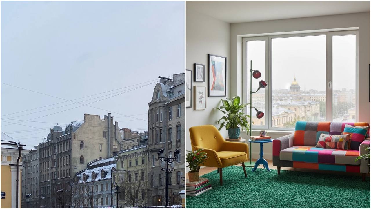 Посмотрите, как контрастируют городские виды и наполненные цветом интерьеры. За окном – сумерки, снег, бетон, а в квартире кипит жизнь – яркие акценты, живые растения, и, конечно, продуманное освещение. Кстати, на коллаже представлен наш торшер из коллекции CUPULA. Его вишневый цвет добавляет глубины, а конструкция позволяет направить свет именно туда, где он нужен — для чтения, освещения комнаты или создания определенной атмосферы.